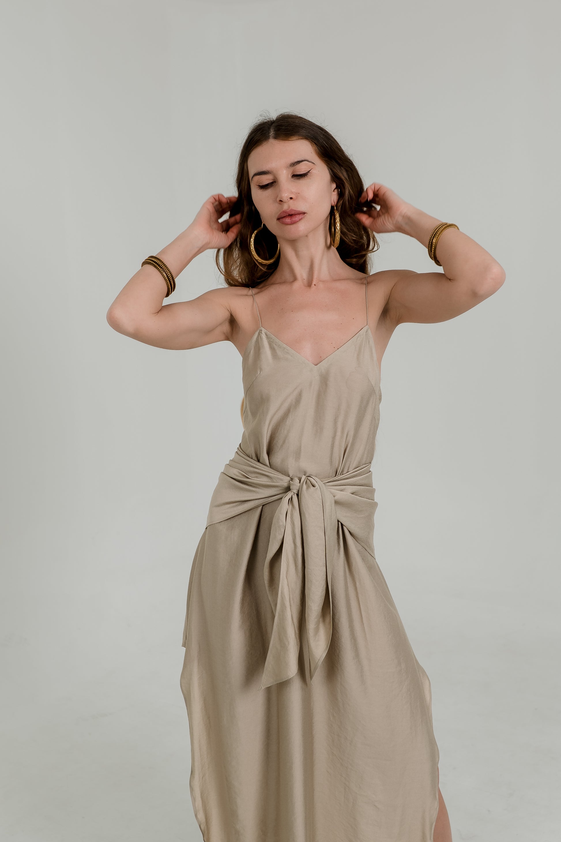 Wear it as a bandana, head wrap, scarf, top accent, or bag accessory—this piece adapts to your personal style. The warm beige tone blends seamlessly with any wardrobe, while the minimal design keeps the look modern and refined.