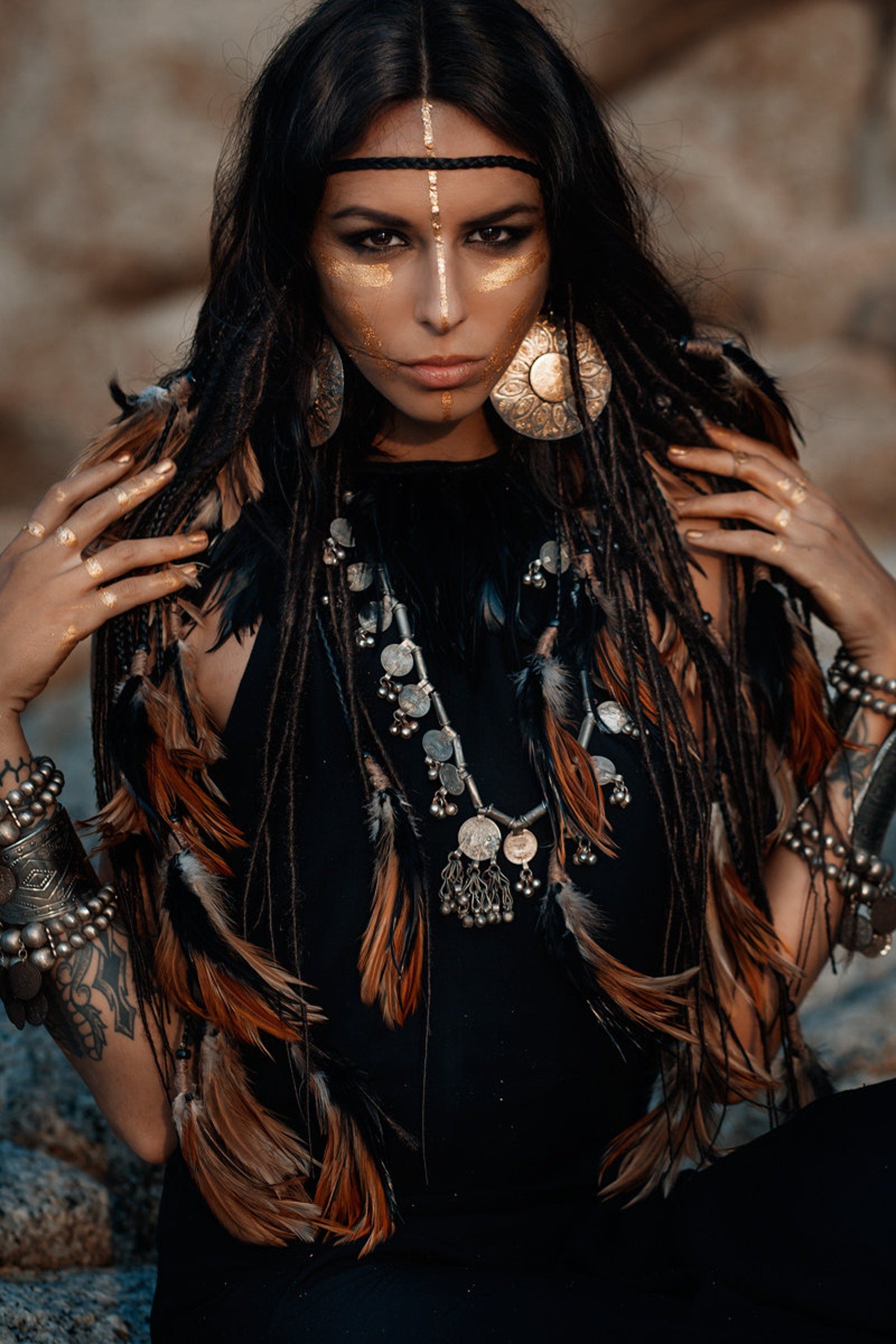 Beautiful handcrafted headband with natural feathers + added synthetic dreads.Each of the feathers are attached to the braids made from synthetic hair material.It will give u desired volume and will complete any boho look.