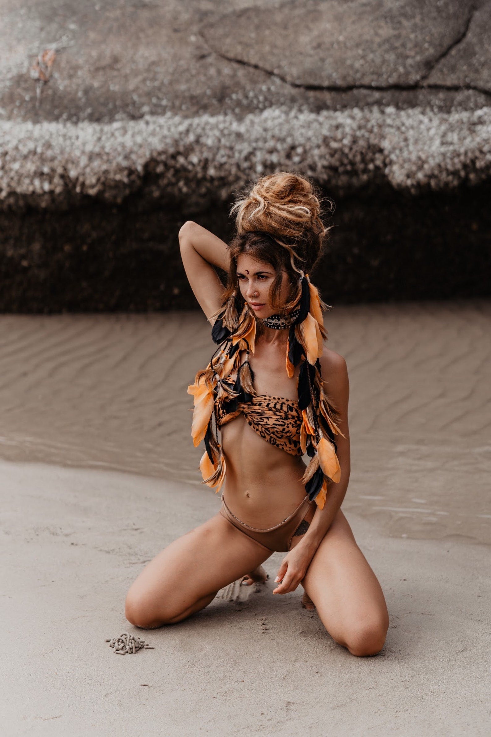 Beautiful handcrafted headband with natural feathers.Each of the feathers are attached to the braids made from synthetic hair material.It will give u desired volume and will complete any boho look.