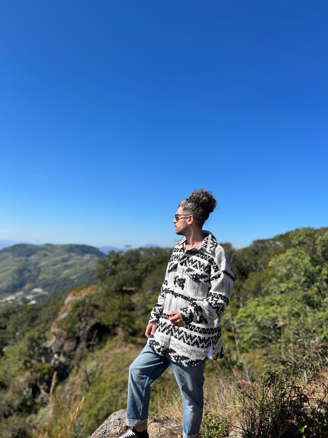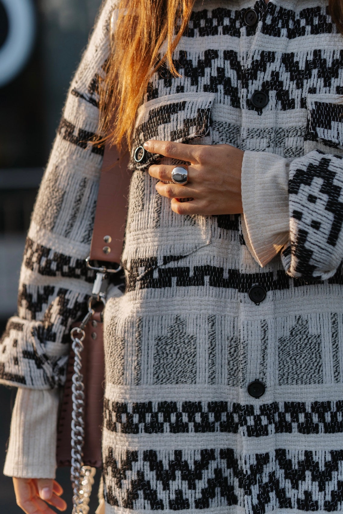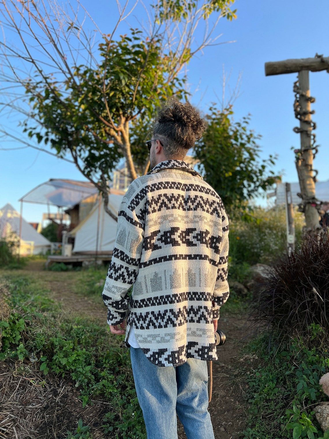 Unisex wool coat | Warm winter coat | Wool winter jacket with print | Collared wool coat | Black ethnic print coat | Collared wool coat