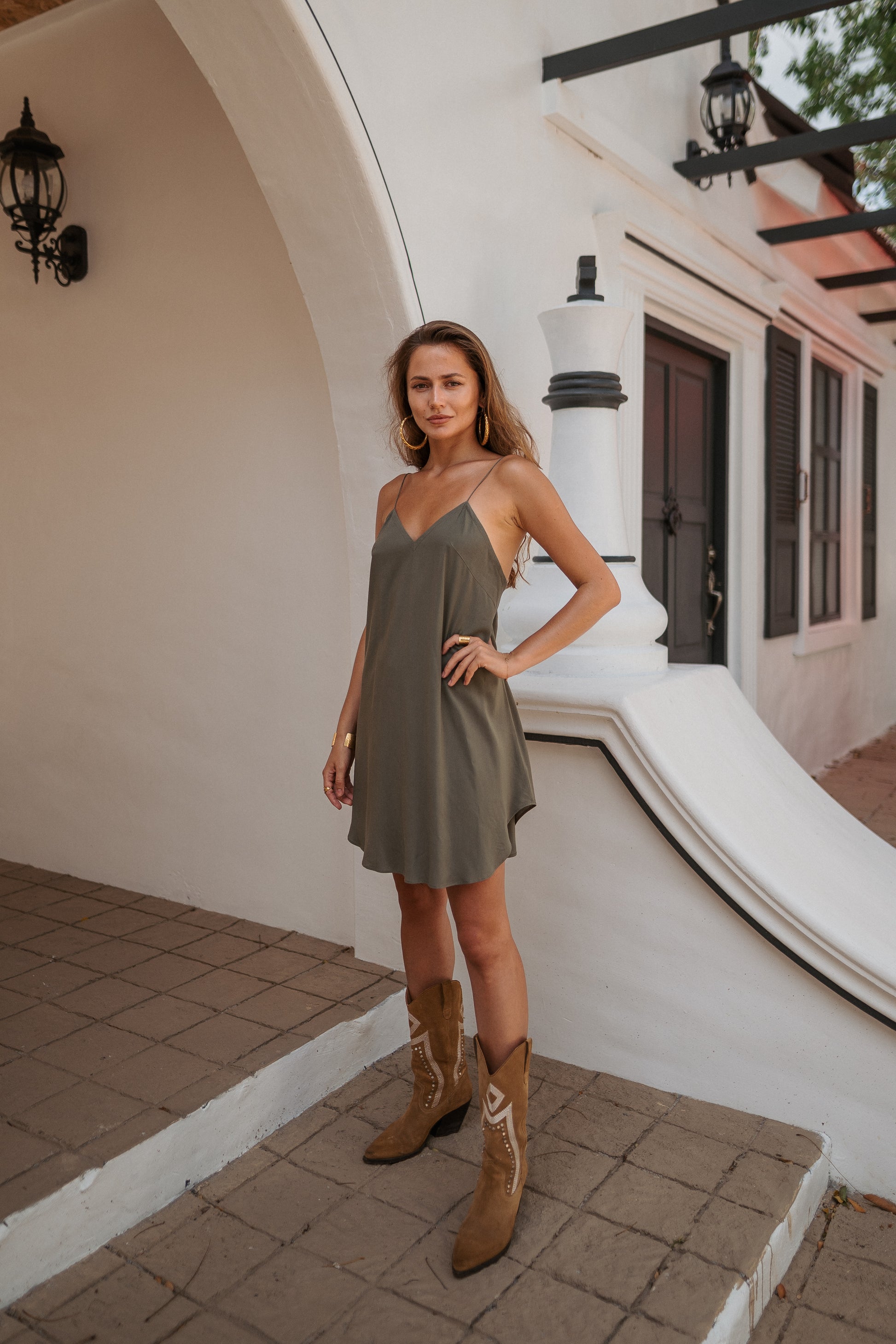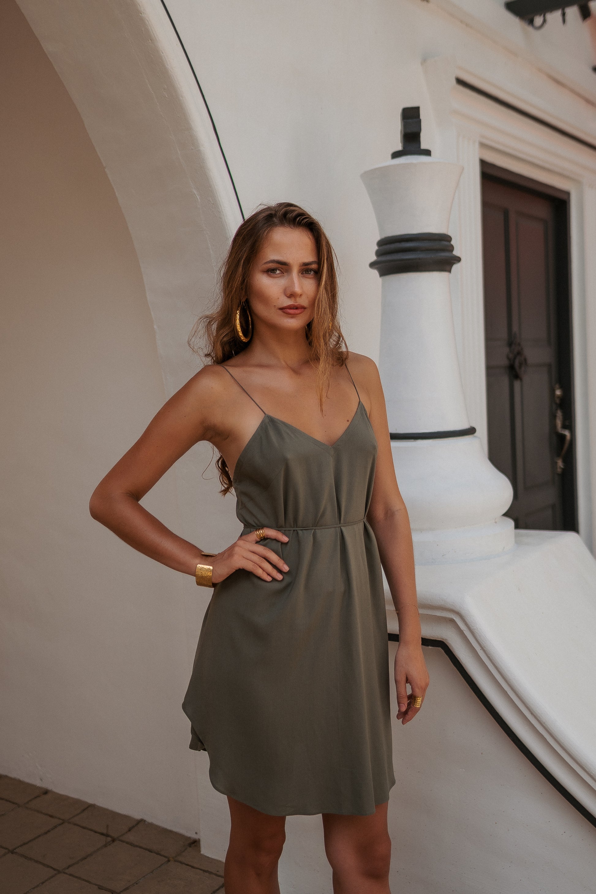 Crafted from 100% sustainable viscose fabric, this dress combines style and eco-consciousness. Its natural flowing fabric drapes beautifully, ensuring a perfect fit for any body shape. The thin straps and open back add a touch of femininity, enhancing its overall appeal.