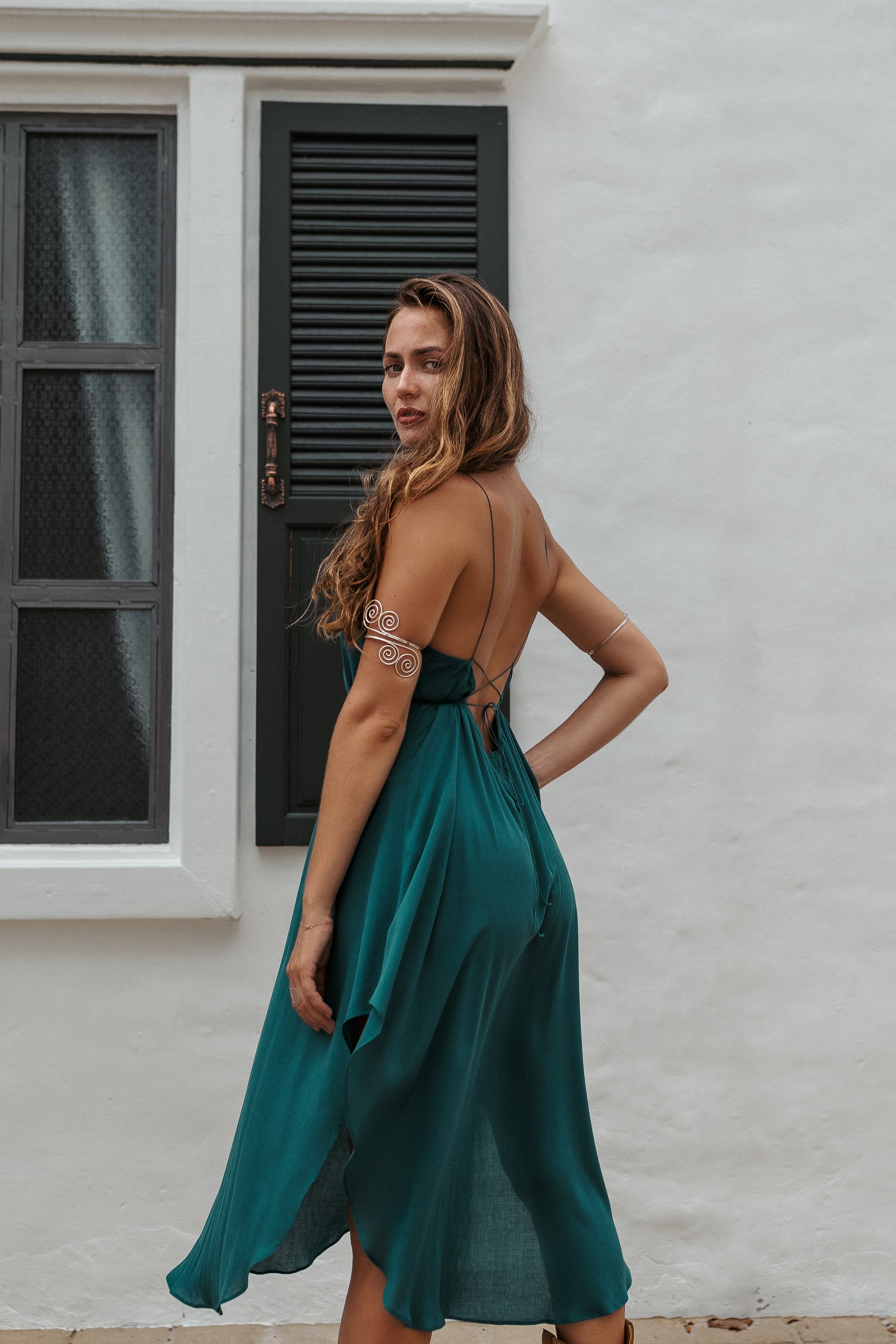 Crafted from 100% sustainable viscose fabric, this dress combines style and eco-consciousness. Its natural flowing fabric drapes beautifully, ensuring a perfect fit for any body shape. The thin straps and open back add a touch of femininity, enhancing its overall appeal.